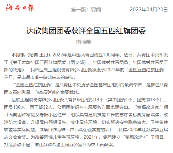 歡迎訪(fǎng)問(wèn)南通市達欣工程股份有限公司官方網(wǎng)站!